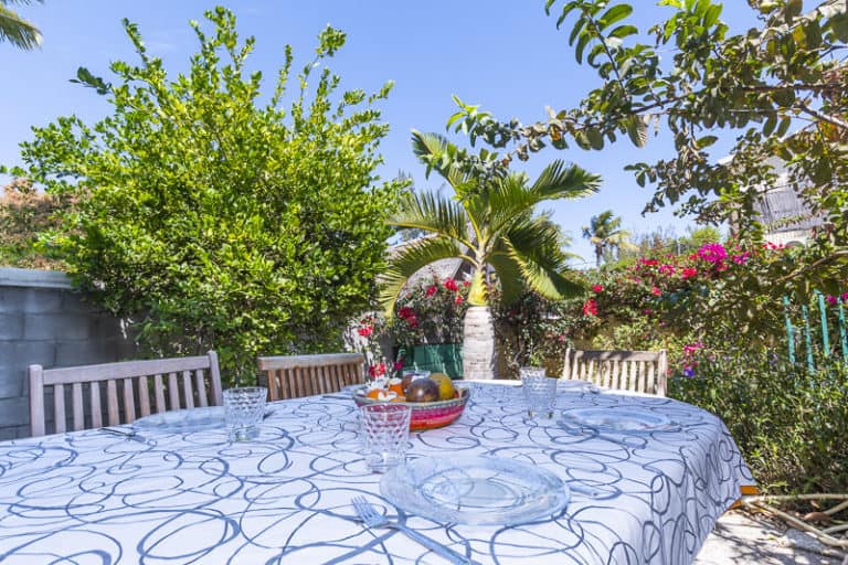 Vous disposerez d’une belle et grande terrasse couverte pour admirer le ciel, la végétation luxuriante des tropiques. C’est l’endroit parfait pour prendre votre petit déjeuner le matin ou savourer les délicieux samoussas le soir.